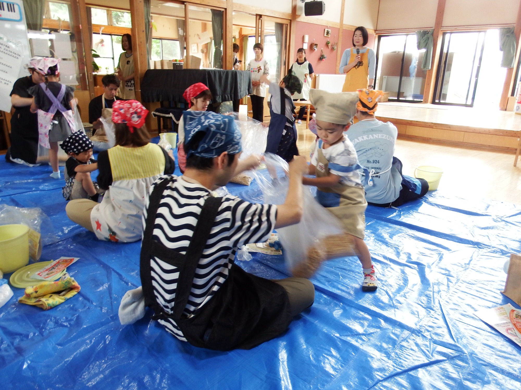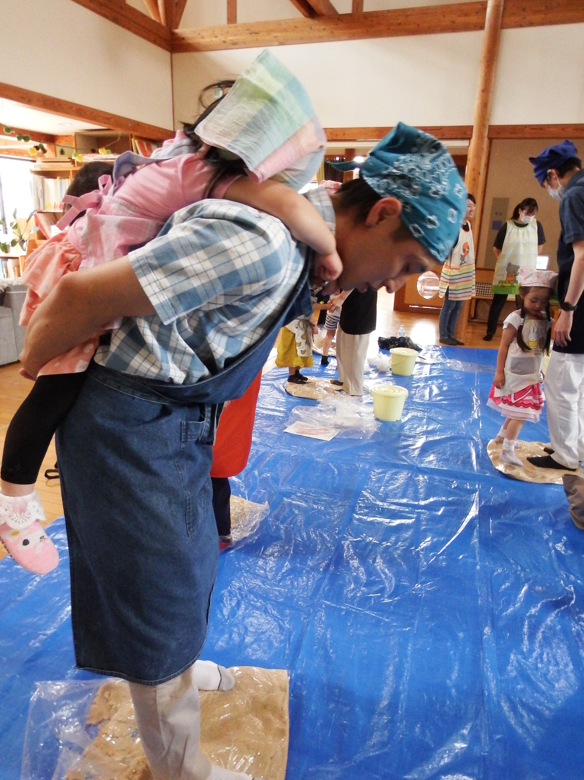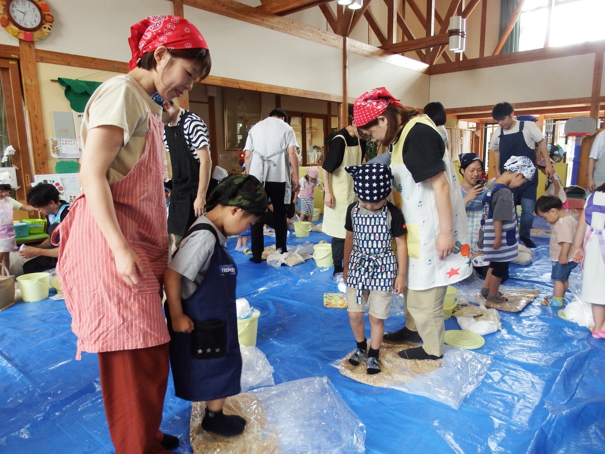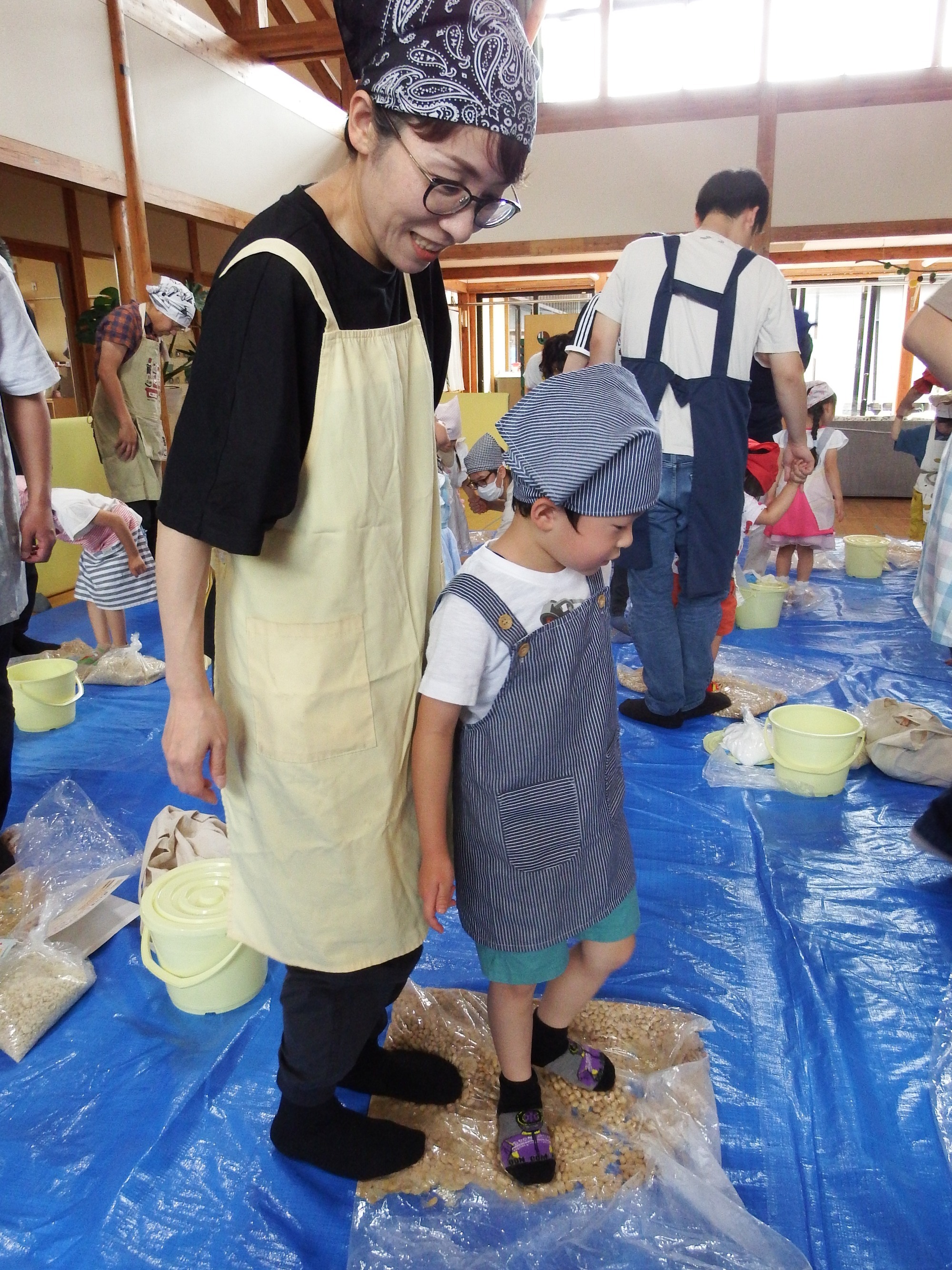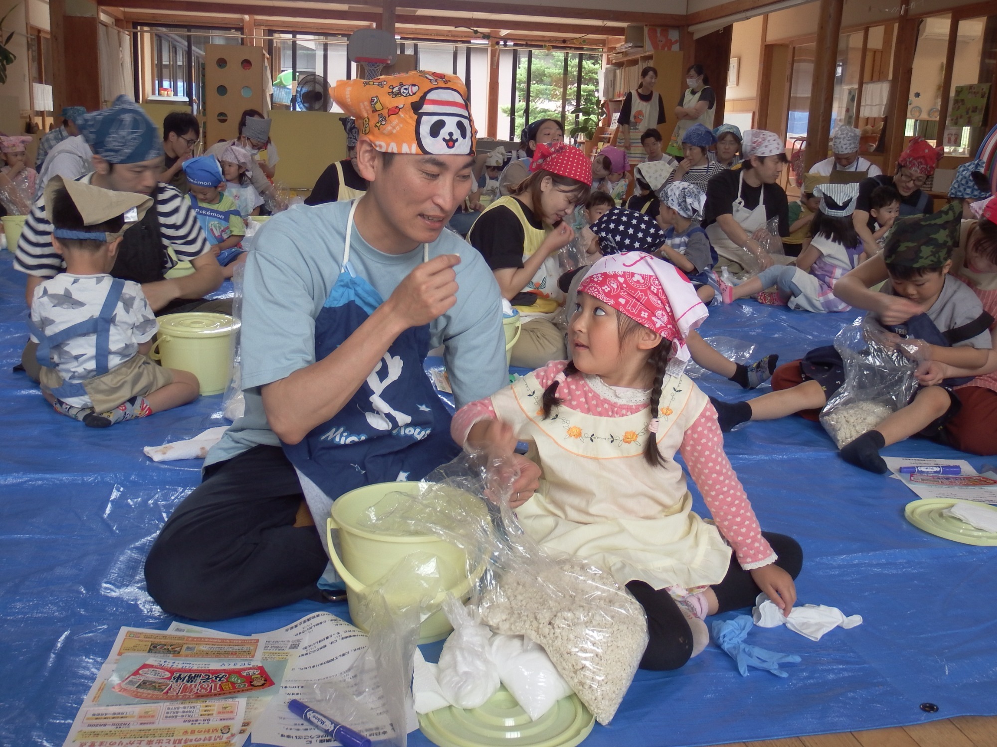 毎年恒例の味噌づくり、親子で触れ合い時々甘えん坊になりながら、身体にやさしく元気をくれる「手作り味噌を作ろう」ということで、親子で協力して取り組みました。