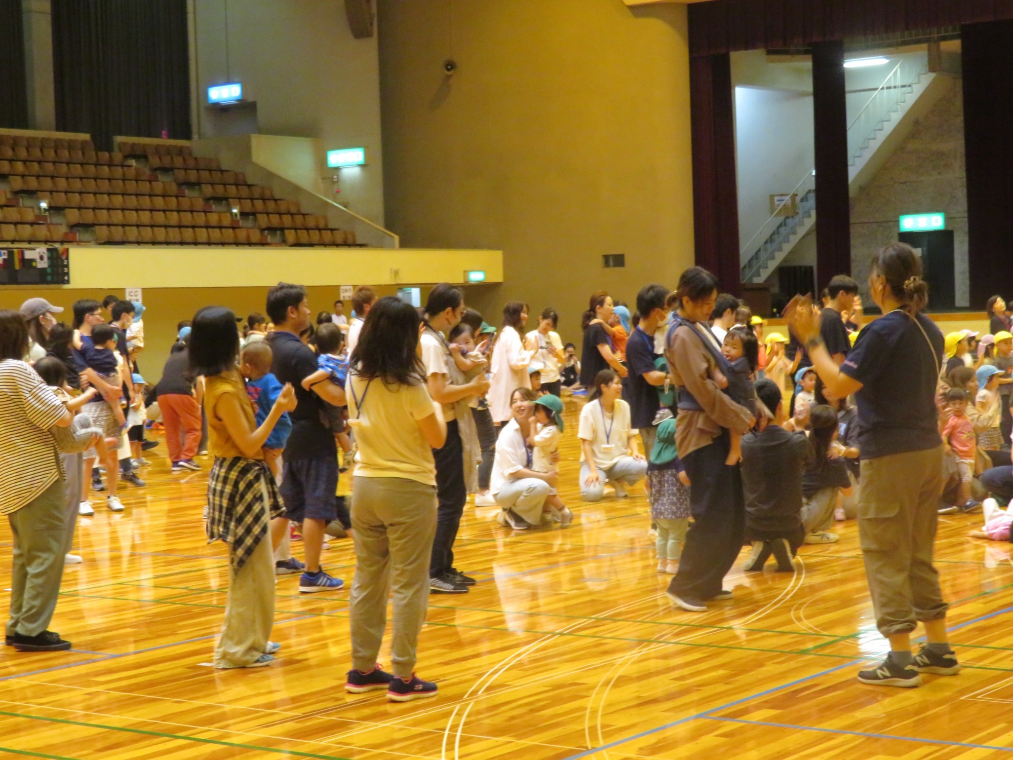 猛暑続きで、熱中症対策のためにオープニングはたいよう組、つき組のみで行いましたが、ウエスタンレンジャーショーはみんなでレンジャーに声援を送りながら気持ちを一つにして楽しみました。