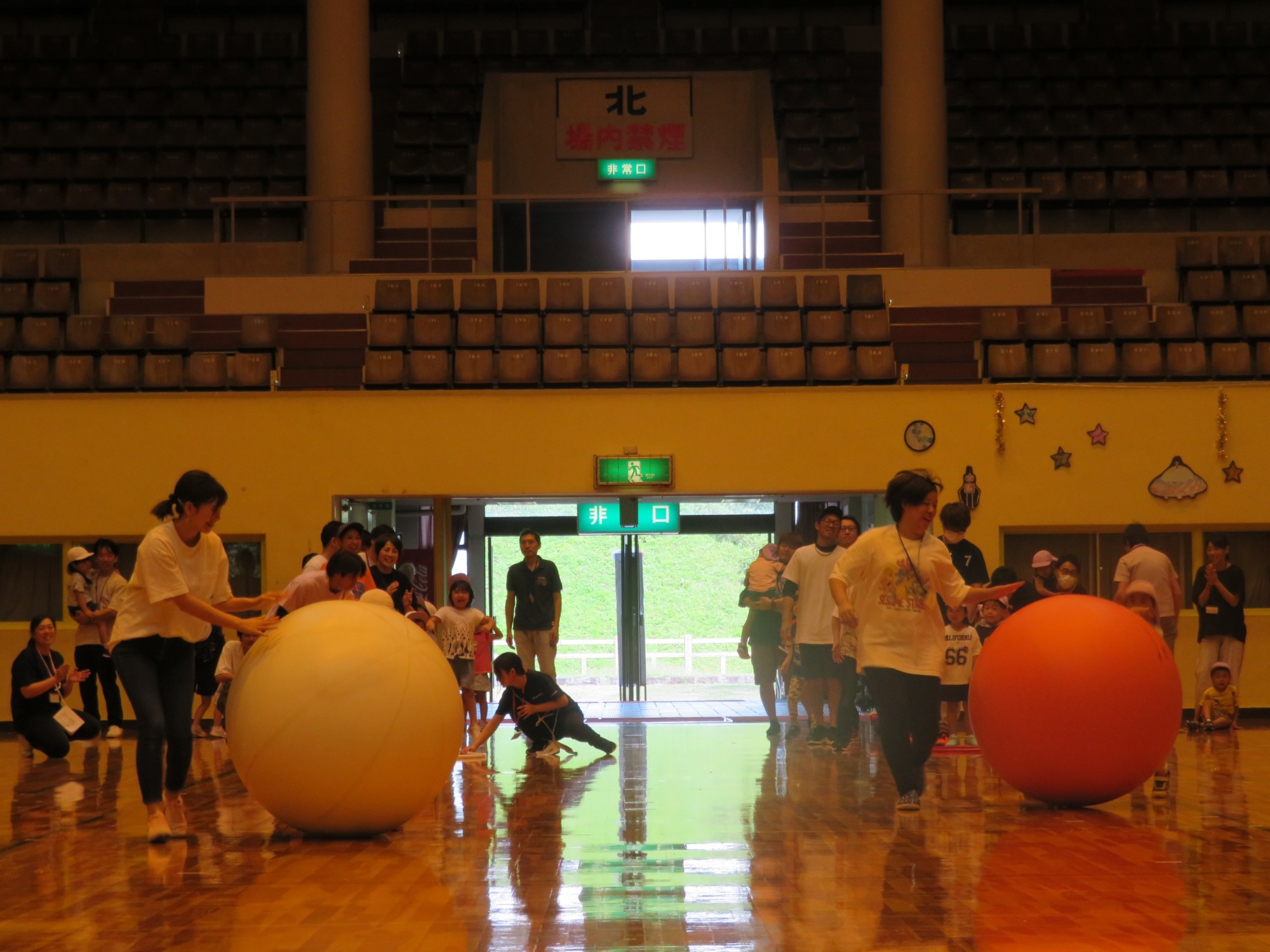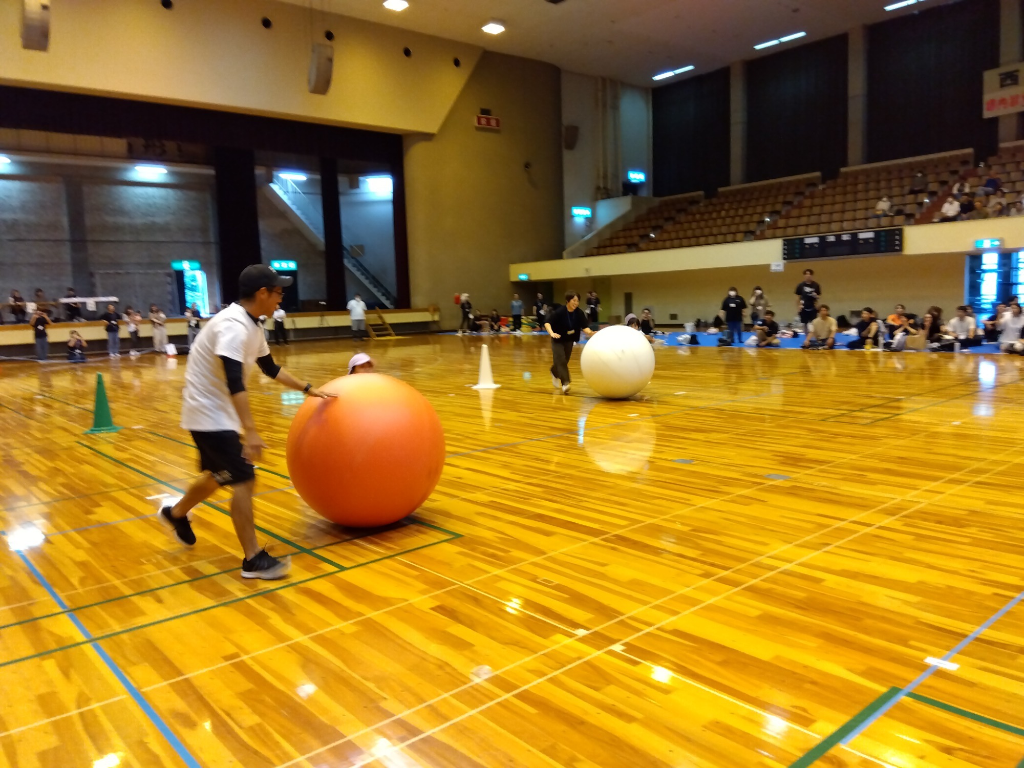 保護者競技は疾走感あふれるボール運び競争をしました。子どもたちの大声援を受けて熱闘が繰り広げられました。