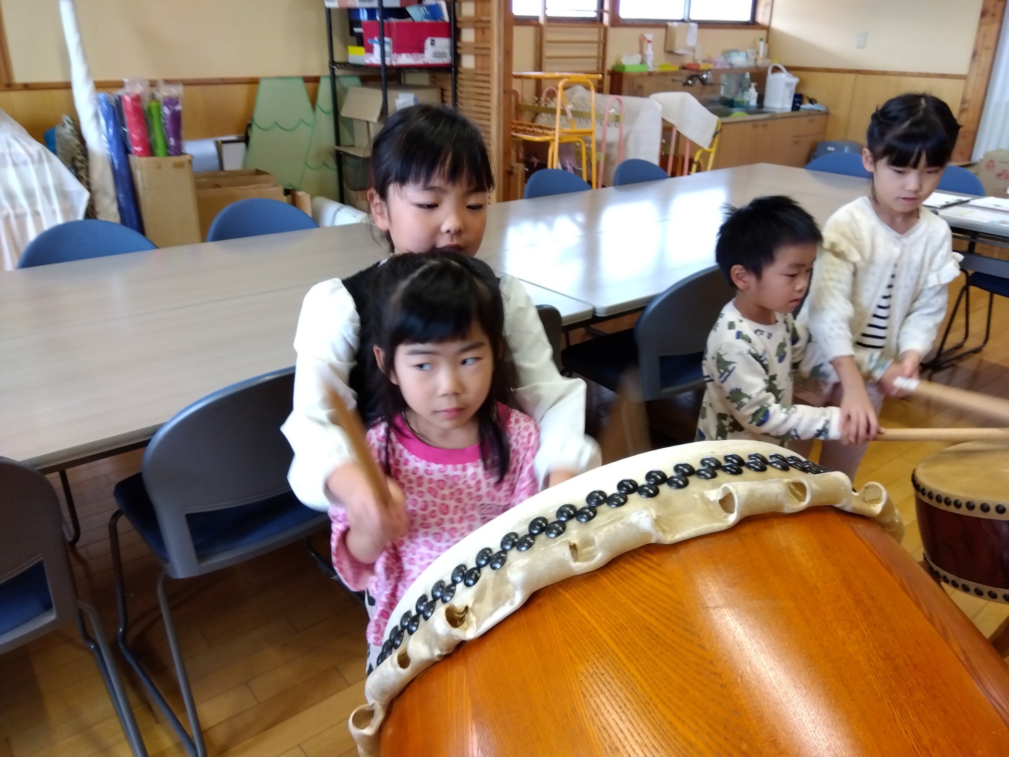 自分たちが去年教えてもらったように、たいよう組の子どもたちは太鼓の種類・約束事・叩き方などくわしくつき組さんに伝えてくれました。