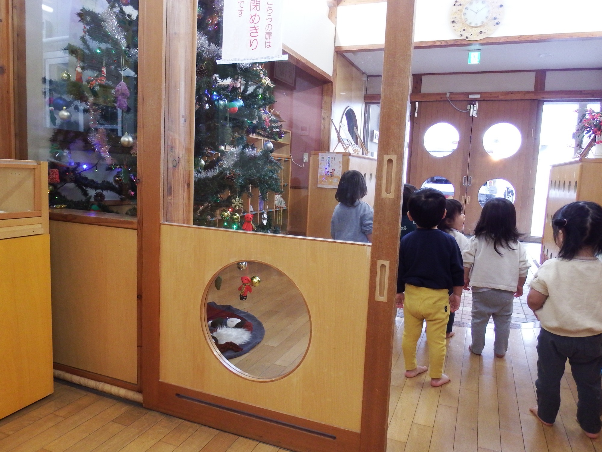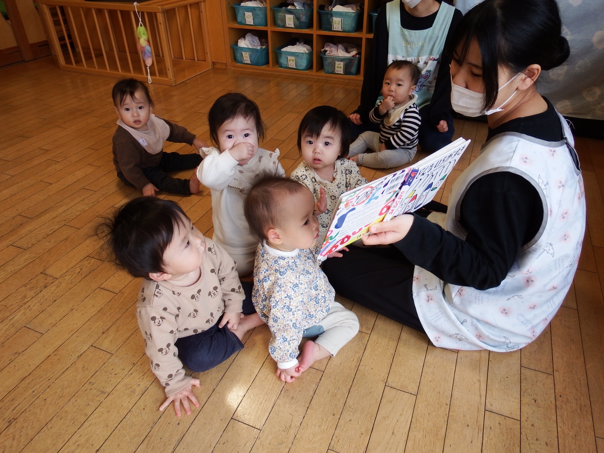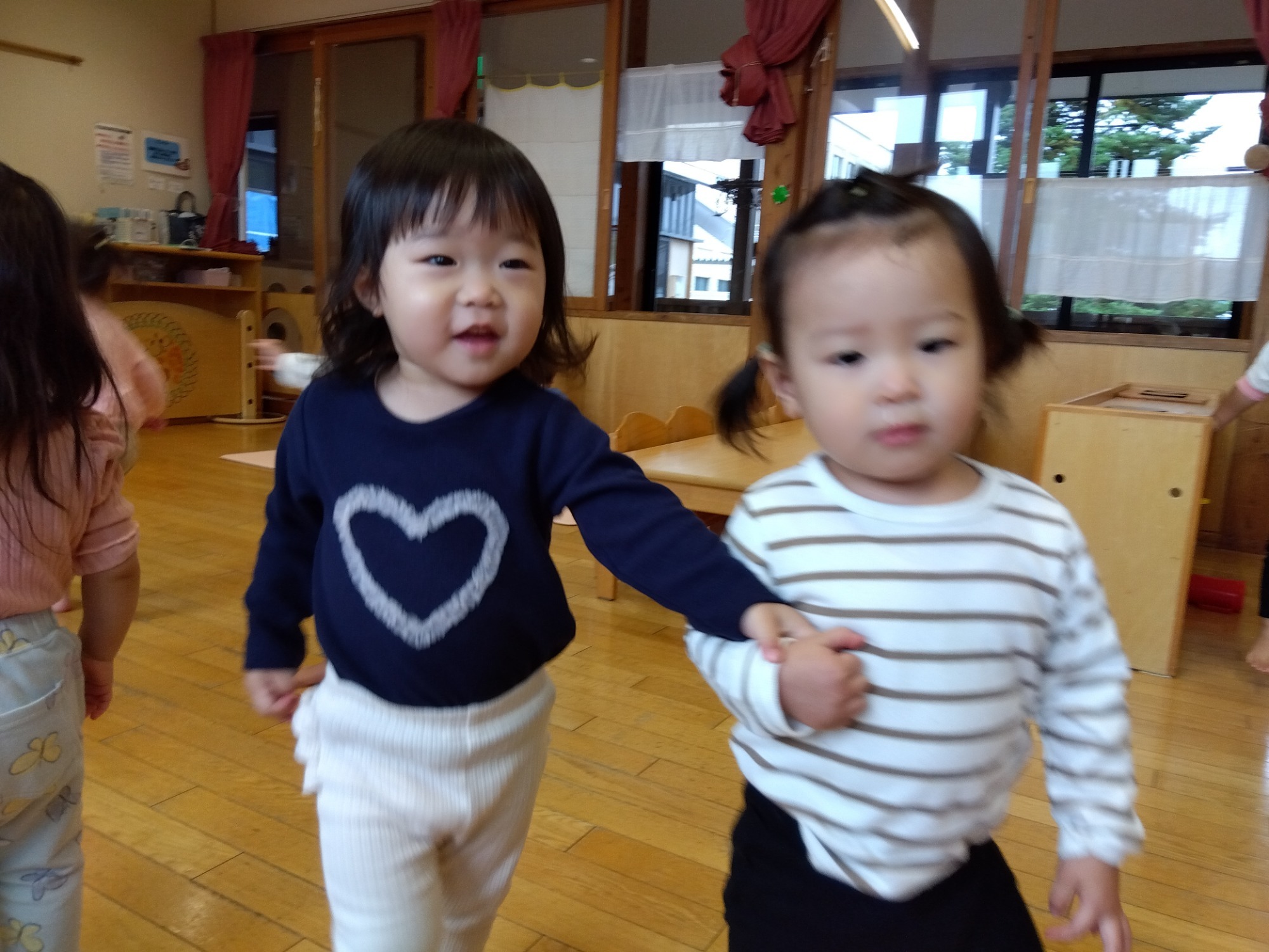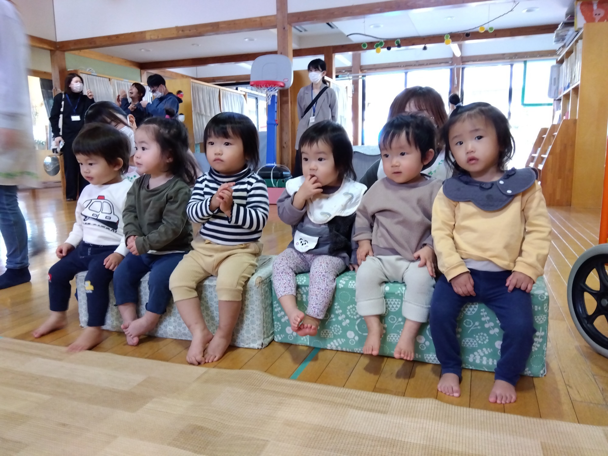 0歳児クラスほし組の1歳半くらいのお友だちも誕生会に参加してみました。