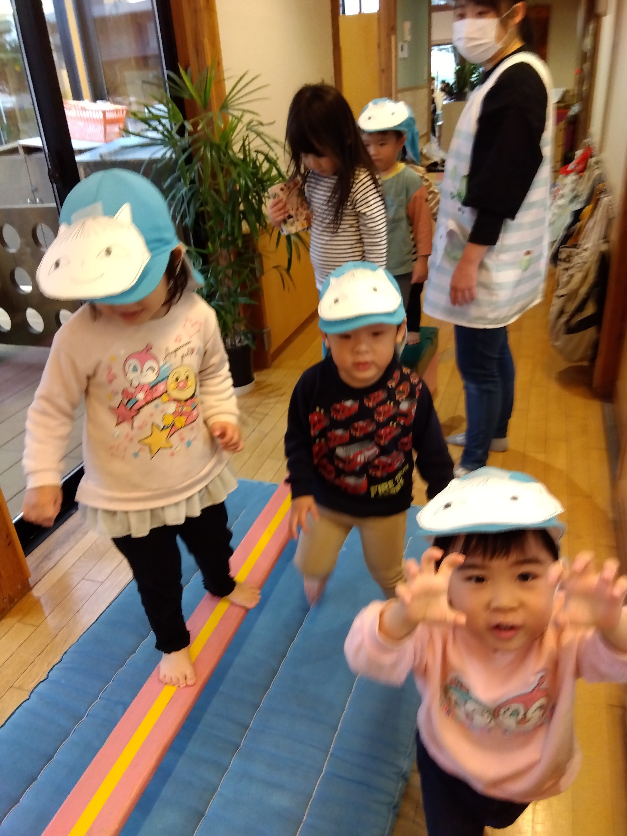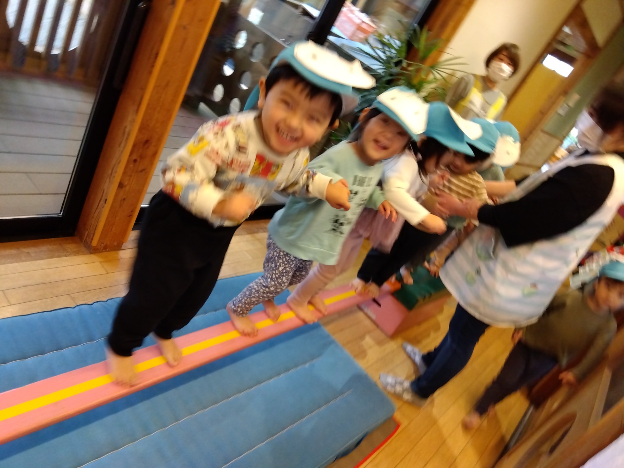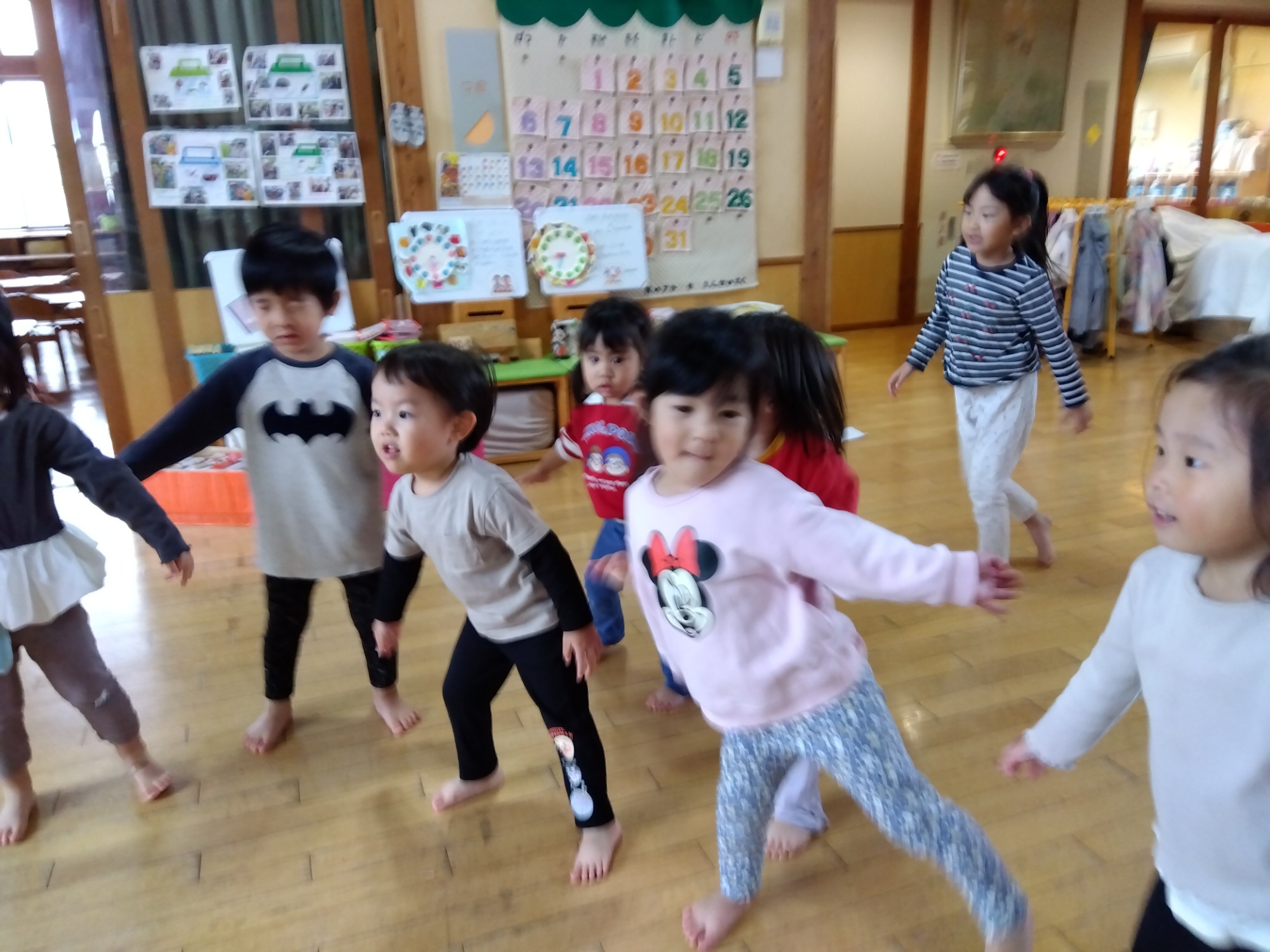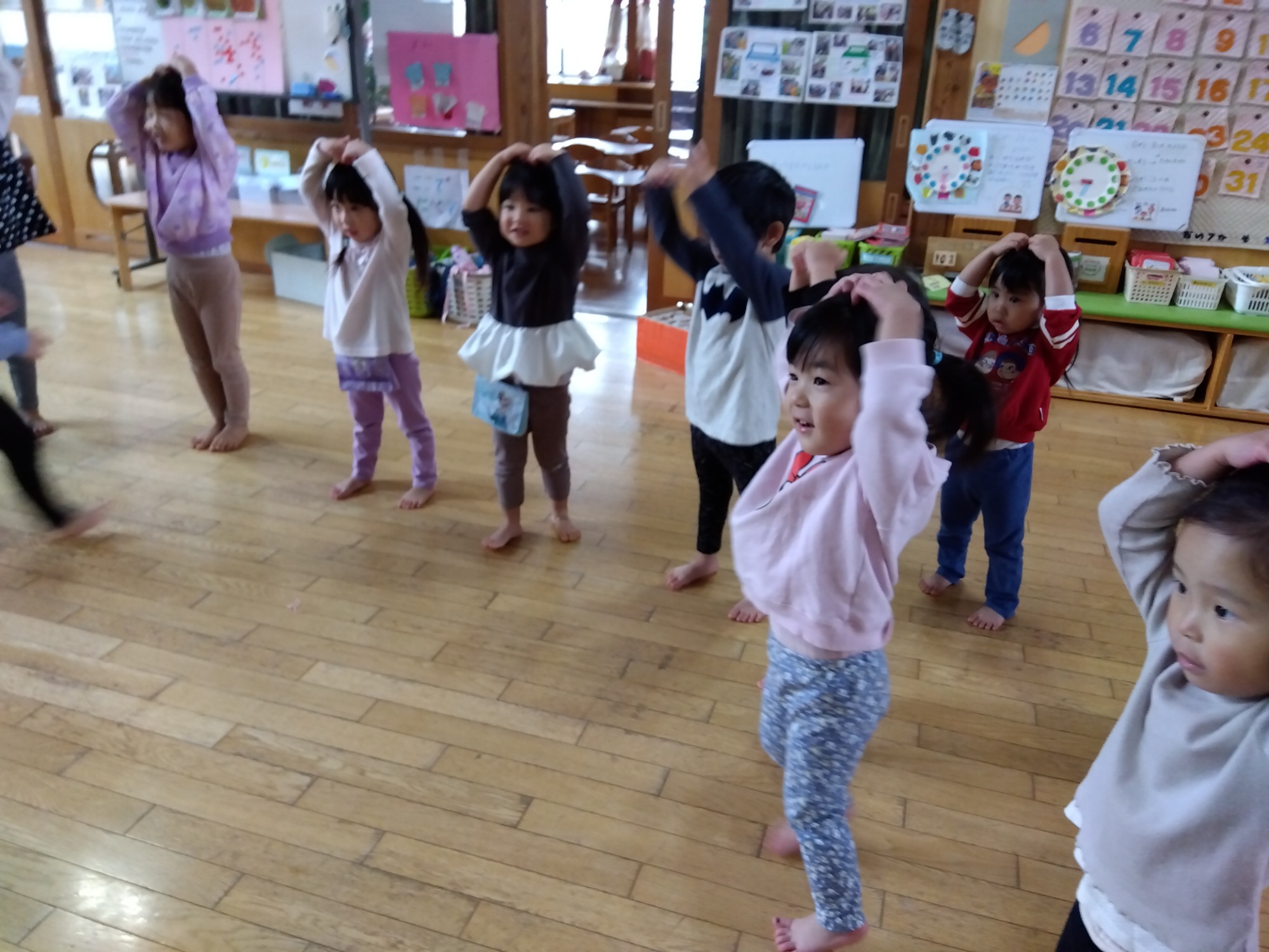 大きい子の真似っこをしながら一緒に身体を動かして遊びます