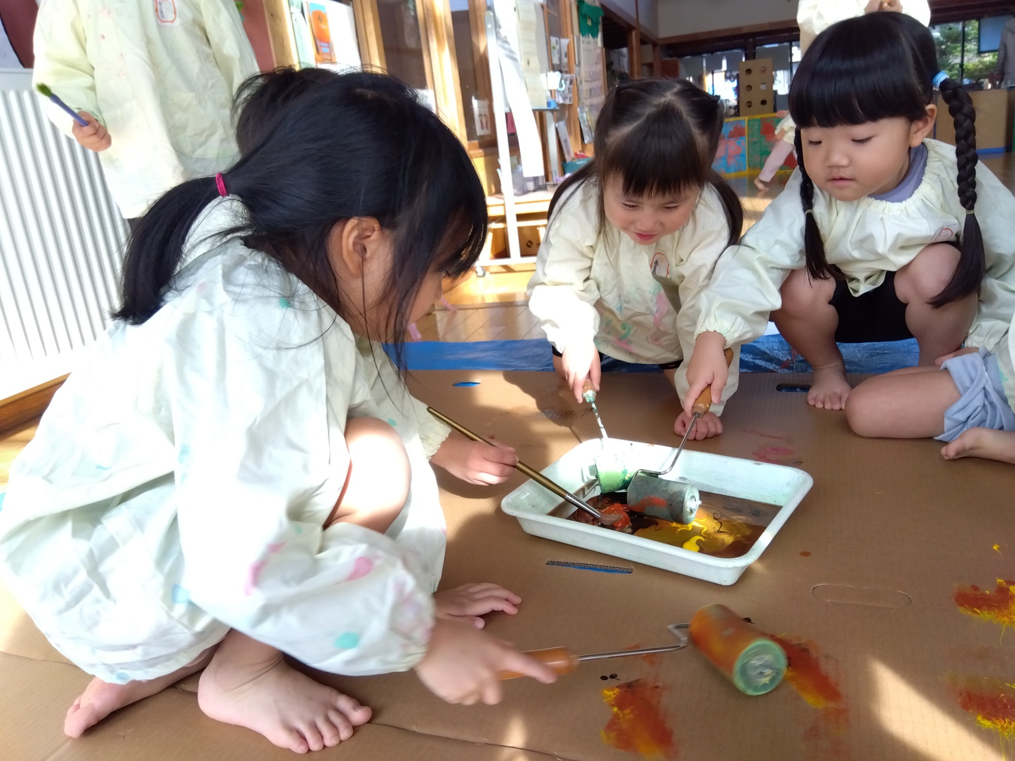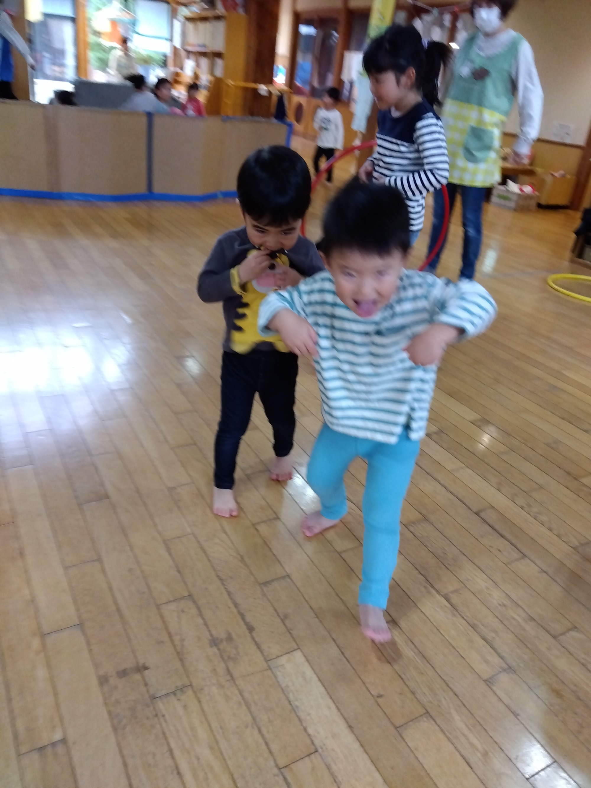 少しずつ、小さいクラス(にじ、ひかり組)の子ども達はお兄ちゃん・お姉ちゃんたちと一緒に遊ぶようになってきました。