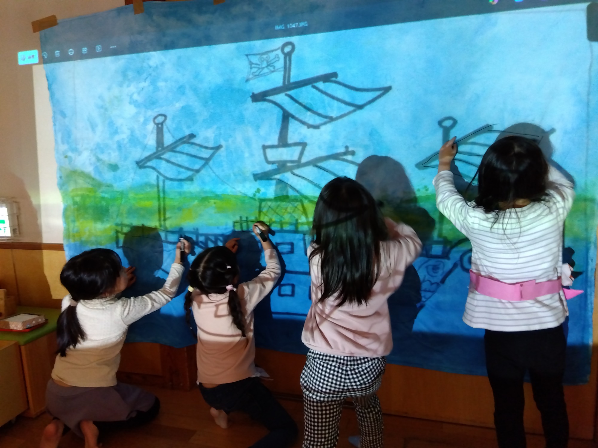 ひかり組は「あかたろうえほん」が大好きで、あかたろうになりきって冒険しているのです。
