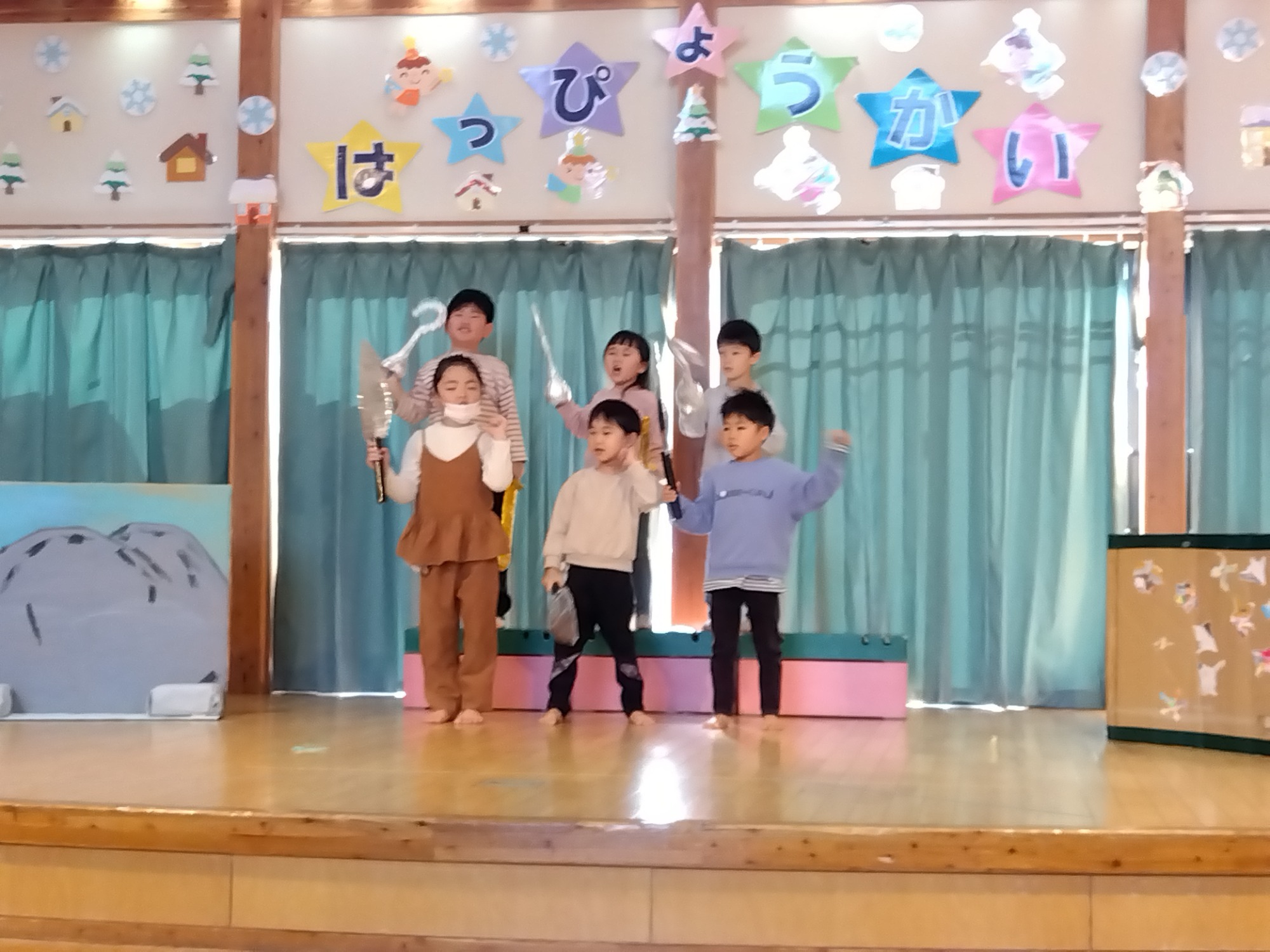 ステージの上で劇遊びやごっこ遊びをしている子ども達は楽しそうで、すっかり役になりきっています。