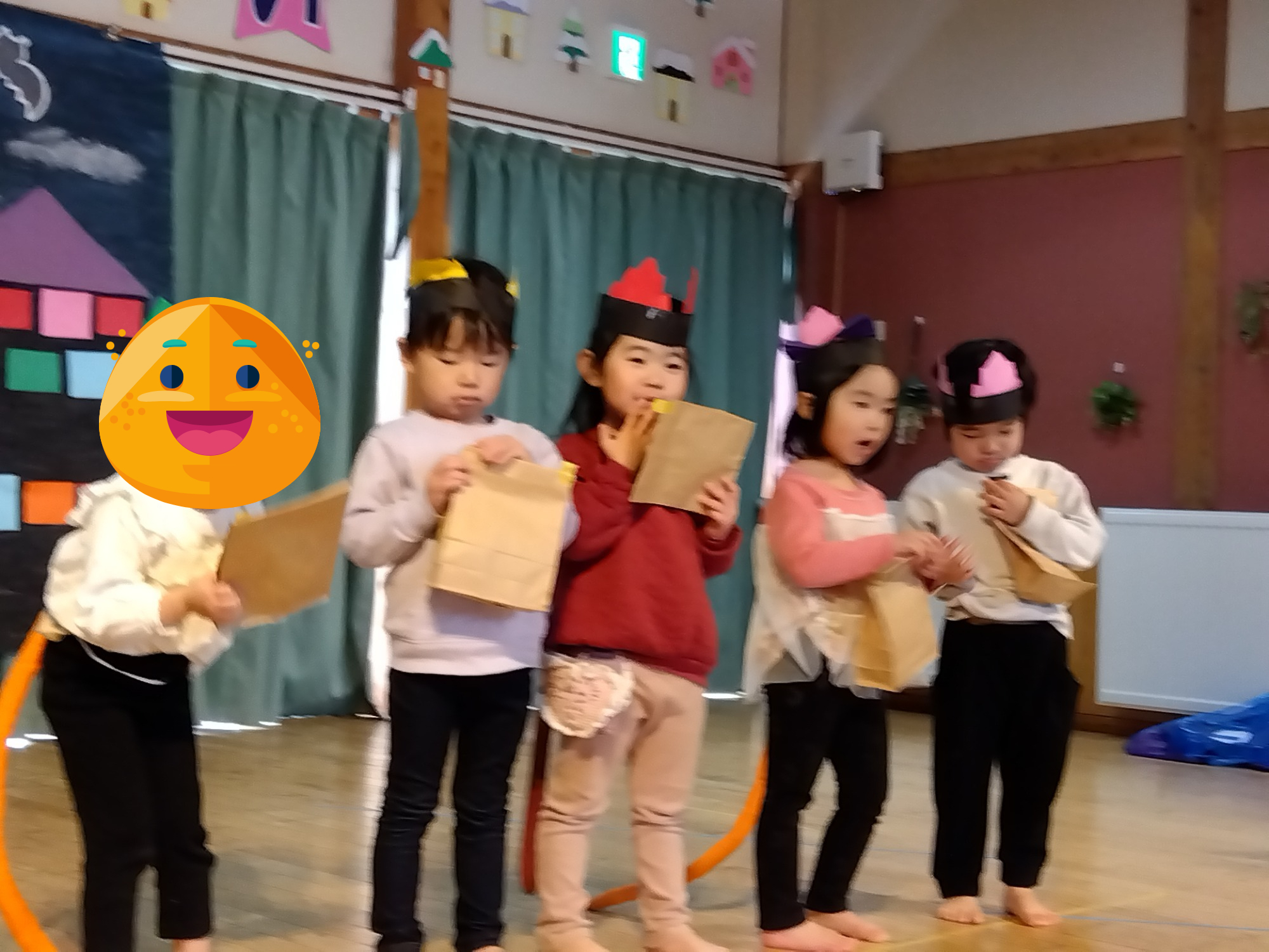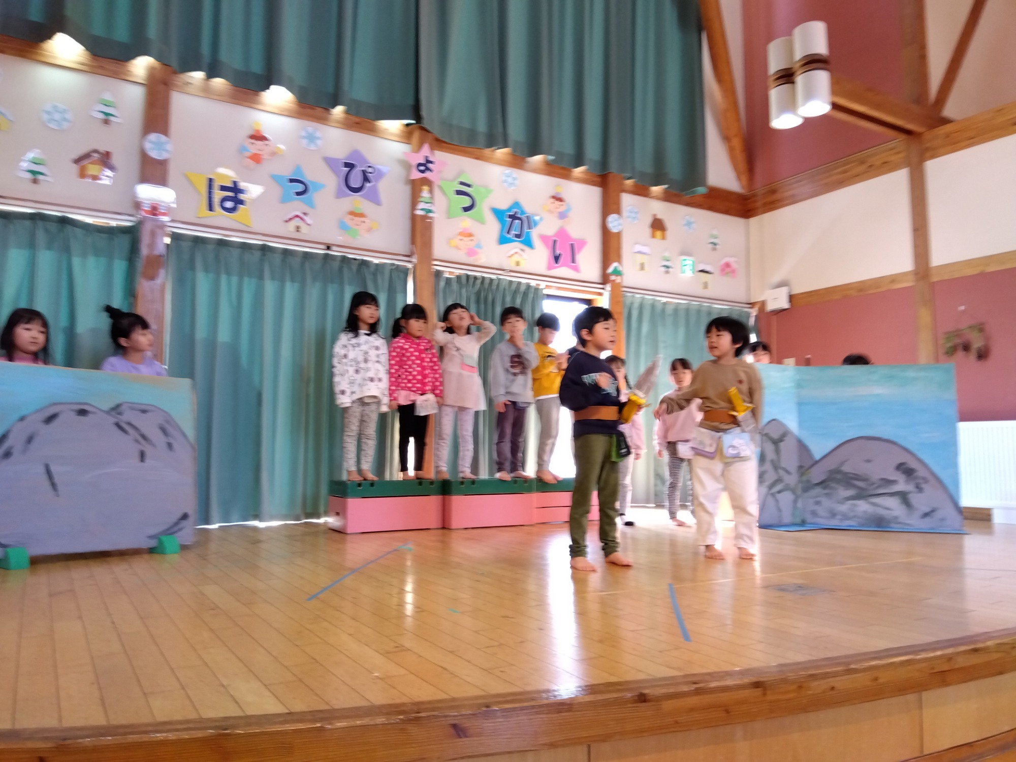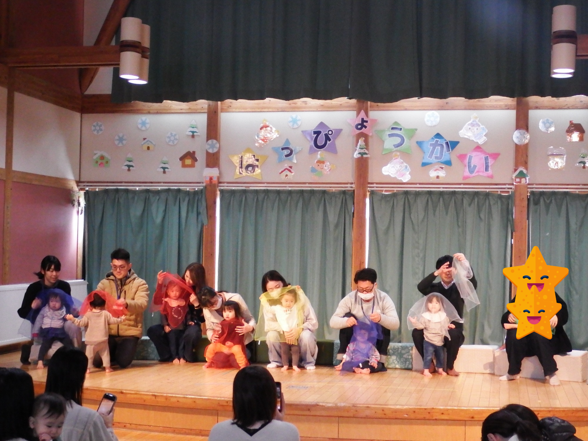 今年のほし、にじ組の生活発表会は、いつも過ごしている雰囲気の延長線でできるように、午前中それぞれのクラスのお家の方に来ていただいてステージ披露しました。