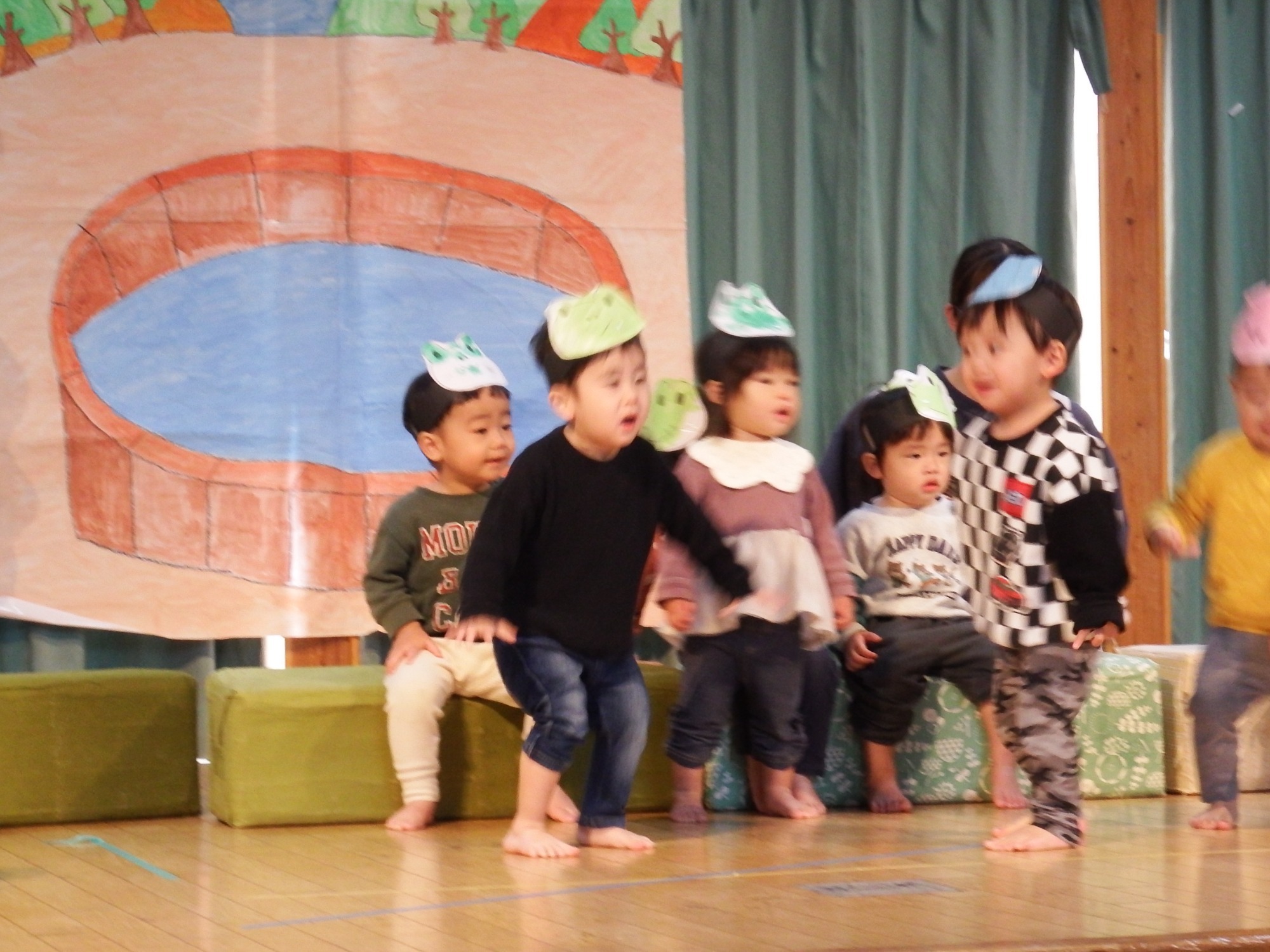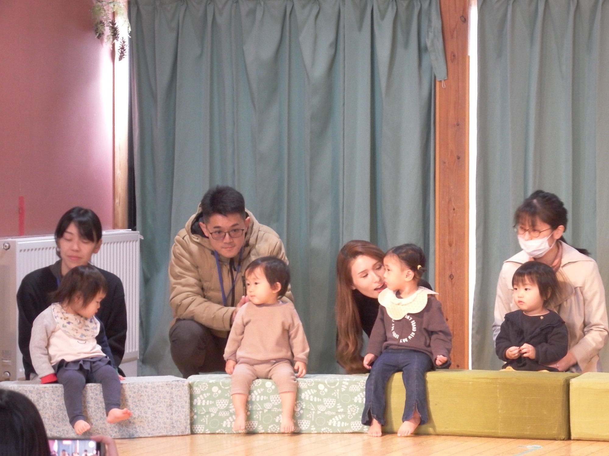 にじ組さんは、少し緊張の面持ちでいつも通りというよりは胸のドキドキがそのまま表れていました。(後日、子ども達だけで改めてステージで楽しんでみました。)