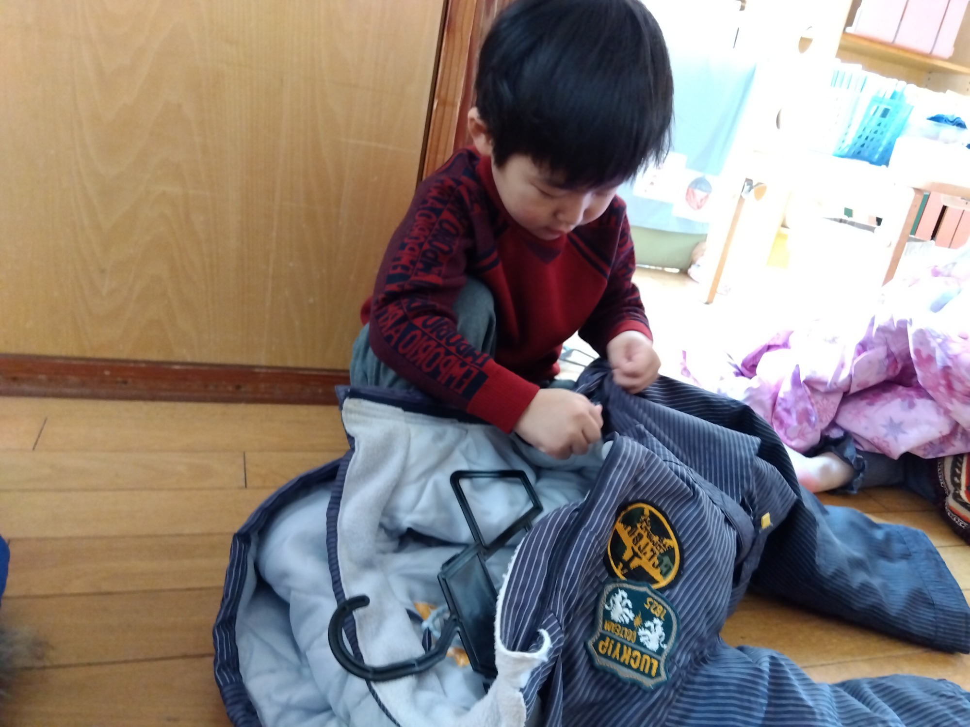 ファスナーも自分でできるようになってきました。手先が器用になってきましたね。