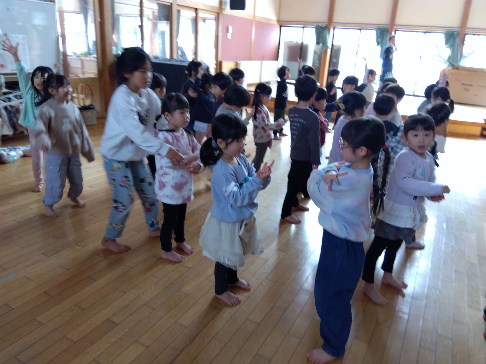 久しぶりのことに少し戸惑いながらも、踊ってみると活き活きと元気に踊るたいよう組さん。