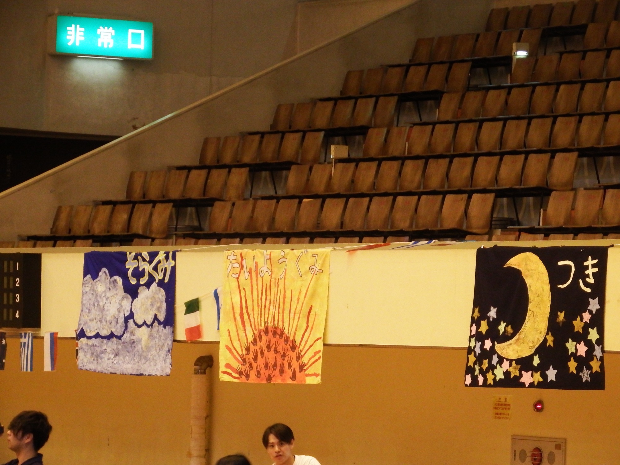 そら、つき、たいよう組の子どもたちが「つくりたい!」と言っていた横断幕。みんなで協力して作製しました。