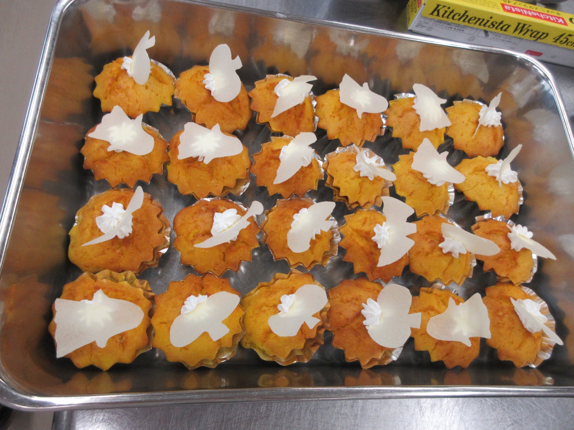 かぼちゃのケーキにカリカリお化けの飾りを添えました!