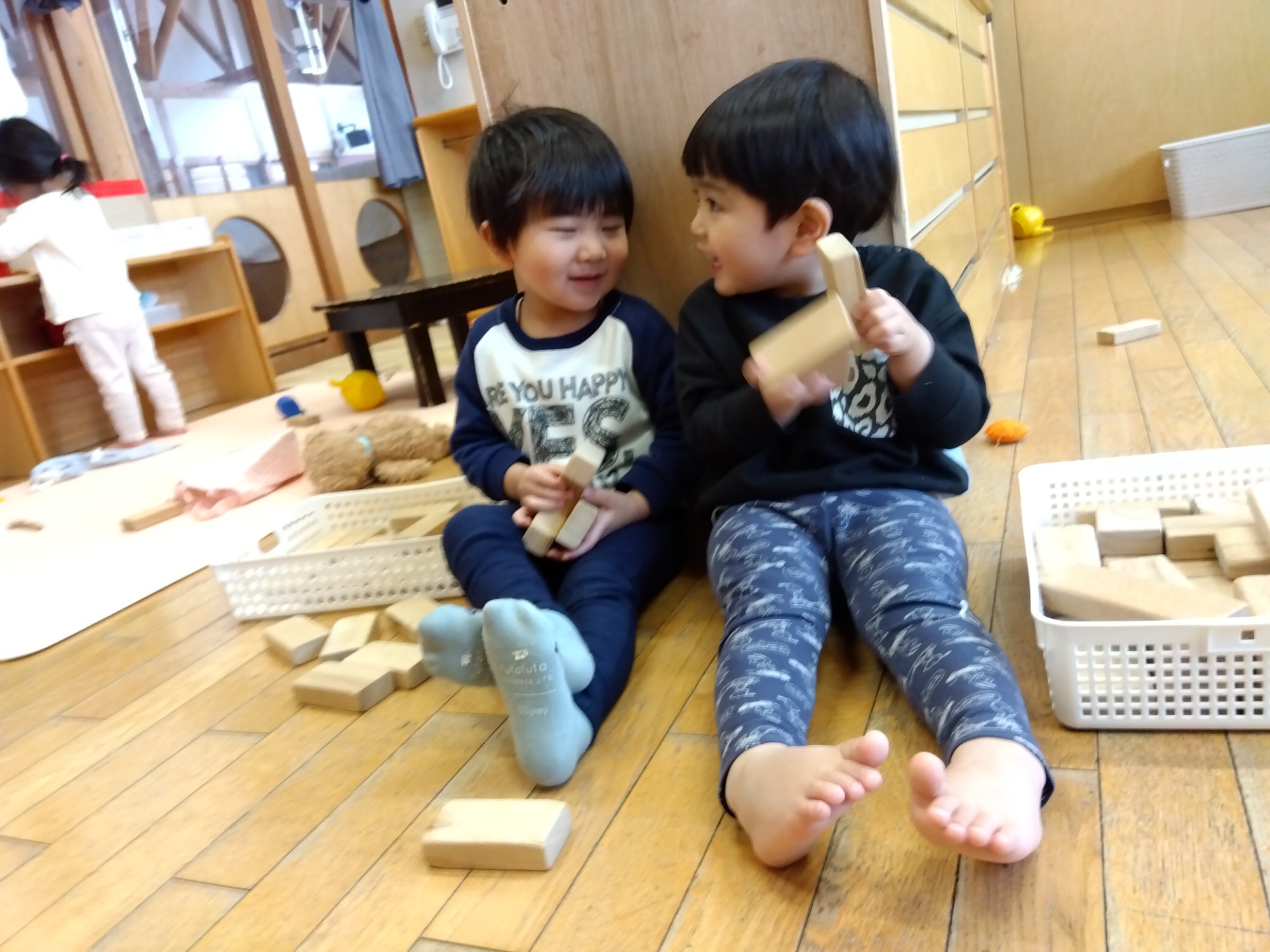 つき組さん、そら組さんでクラスが違っていても「いっしょにあそぼう」と誘い合うことが増えてきました。
