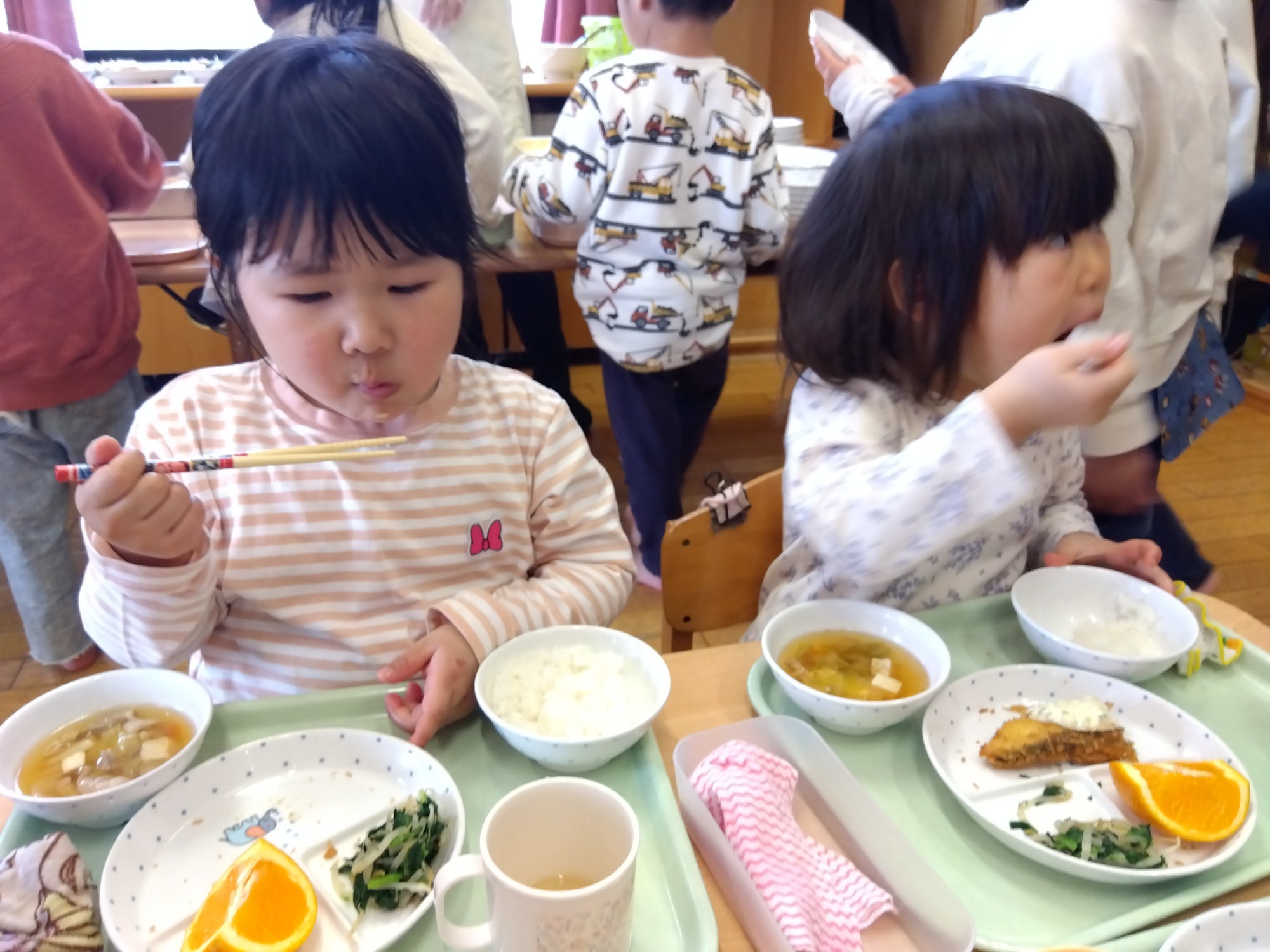 おかわりしたい子が続出で「いいなあ」「食べたいなあ」というたいよう組さんへのおすそ分けができず、つき組さんでたいらげるくらい大好評でした。