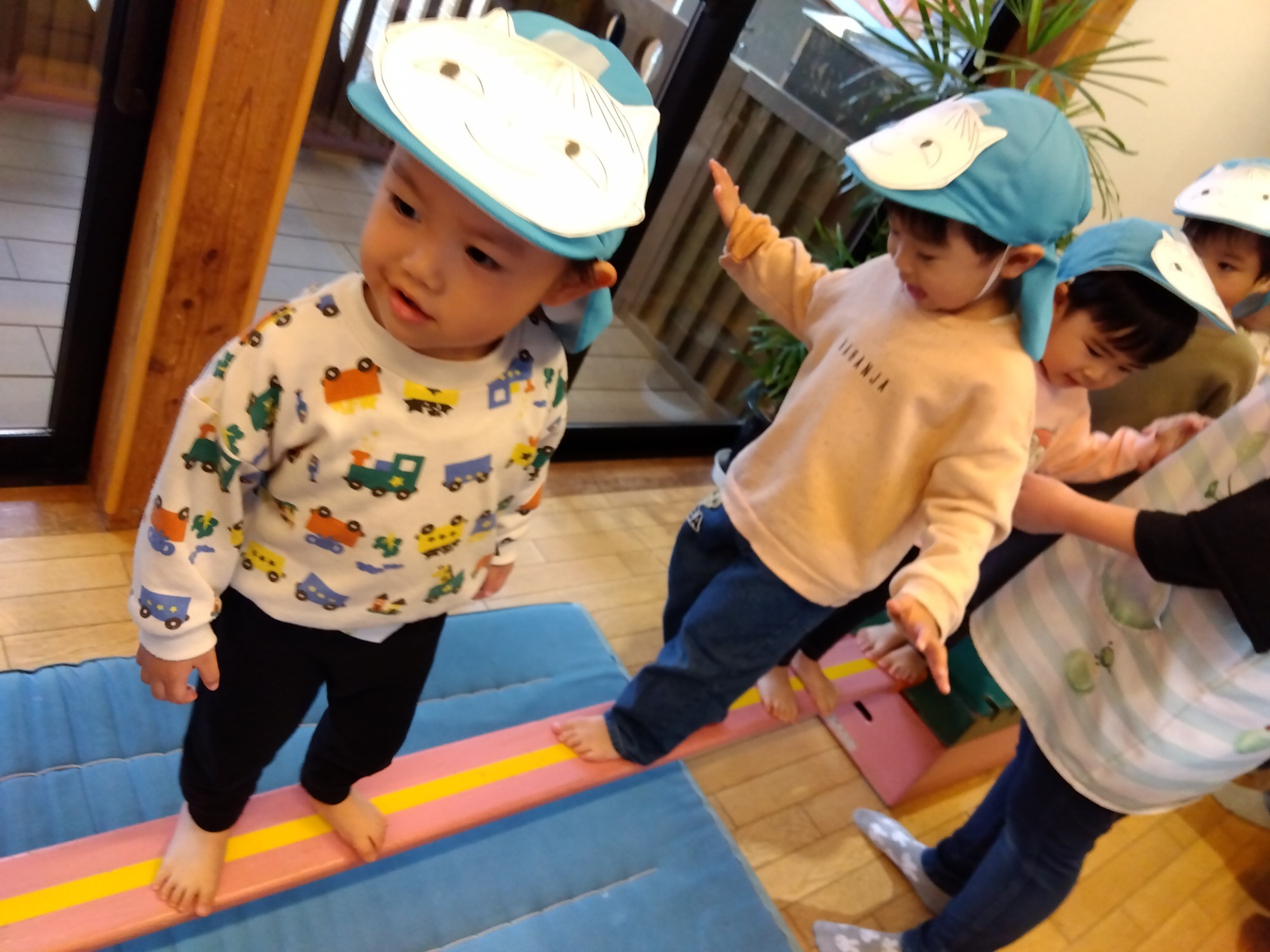 大きい子の真似っこをしながら一緒に身体を動かして遊びます