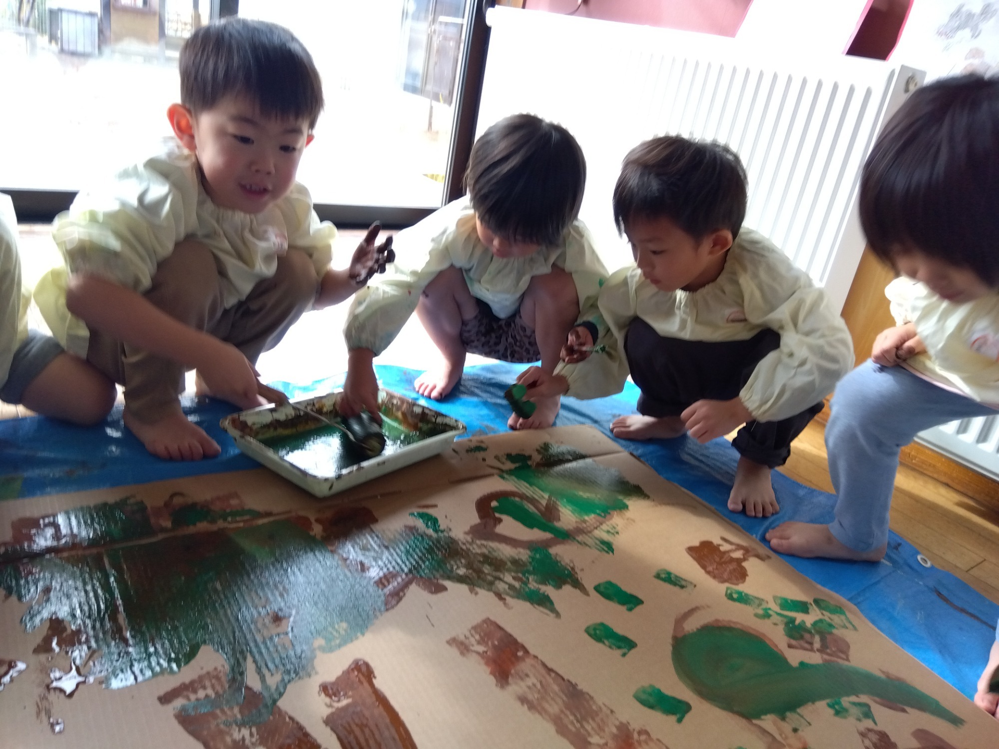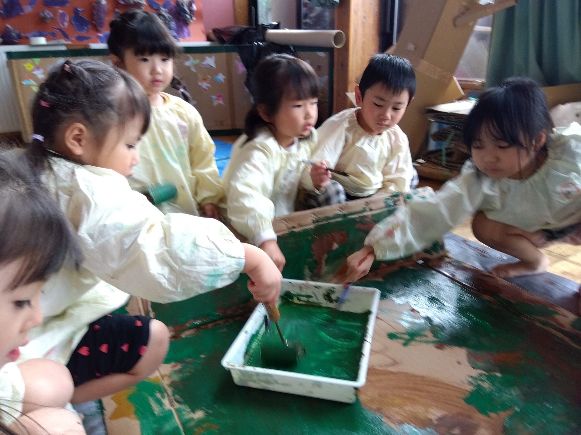 少しずつ、小さいクラス(にじ、ひかり組)の子ども達はお兄ちゃん・お姉ちゃんたちと一緒に遊ぶようになってきました。