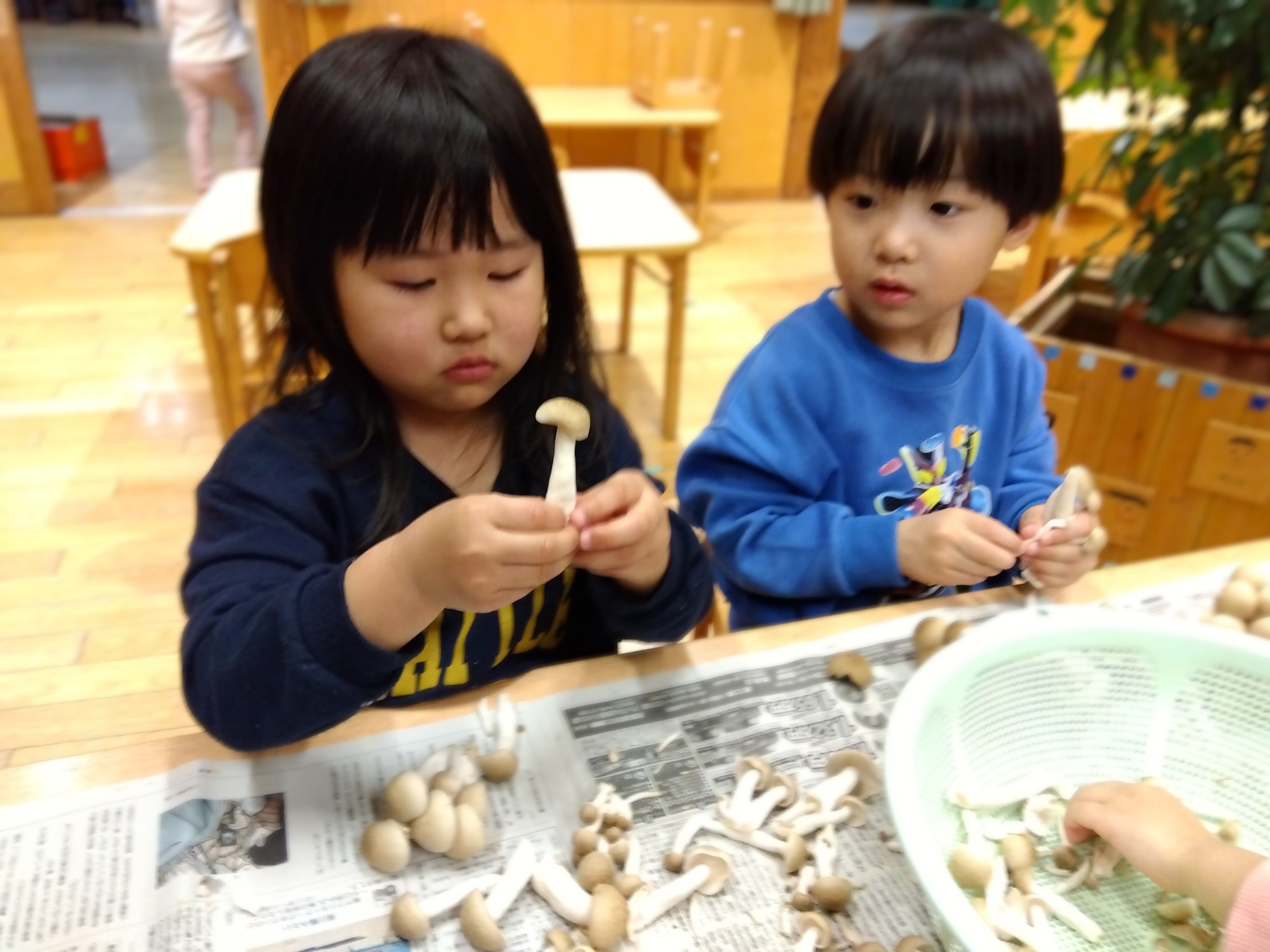 つまんだりちぎったりしながら「これは、なんだろうな?」「おもしろいな」「きもちいいな(または)きもちわるいな」「ふしぎだな」などなどいろんな思い・感覚を遊びの中で味わいます。