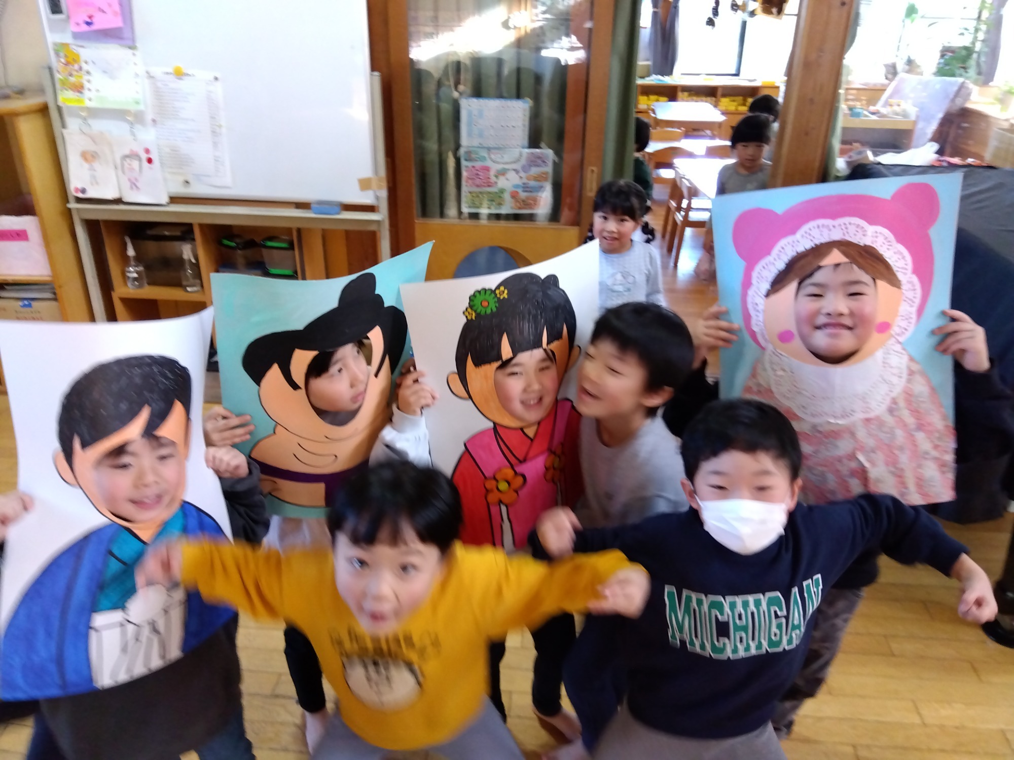 今、みんなが好きなお話しを劇にして遊んでいて、劇の中で使うものに変身させようということになりました。