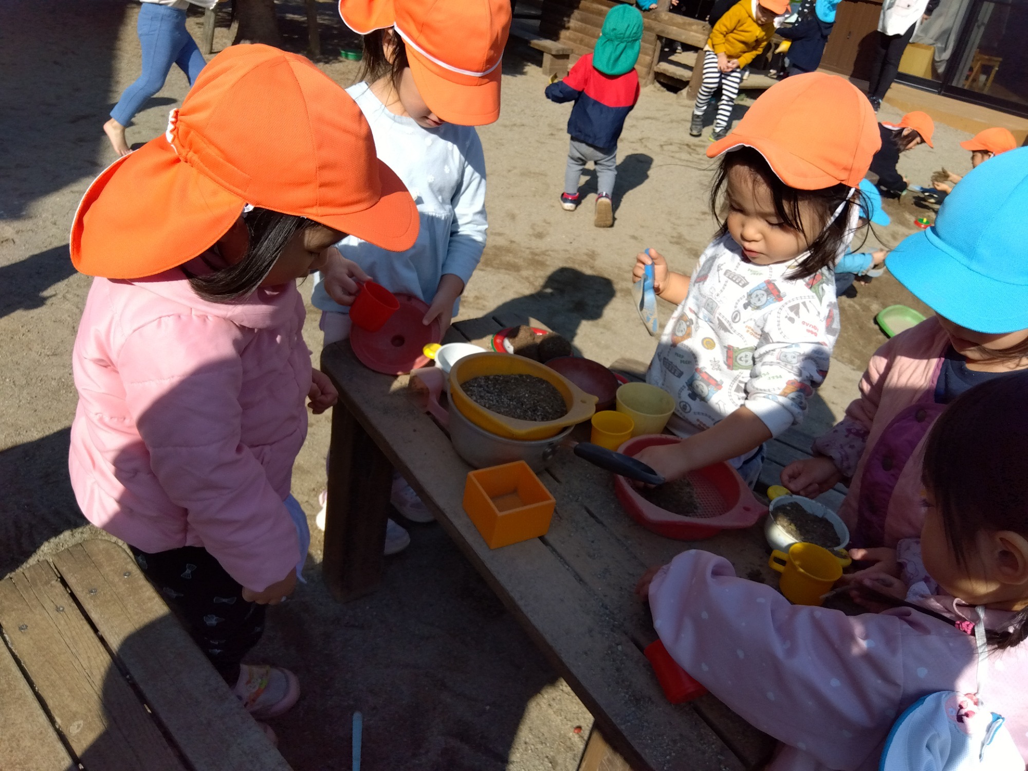 木の実西部こども園には園庭が3か所あって、それぞれの年齢に合わせて外遊びを楽しんでいます。
