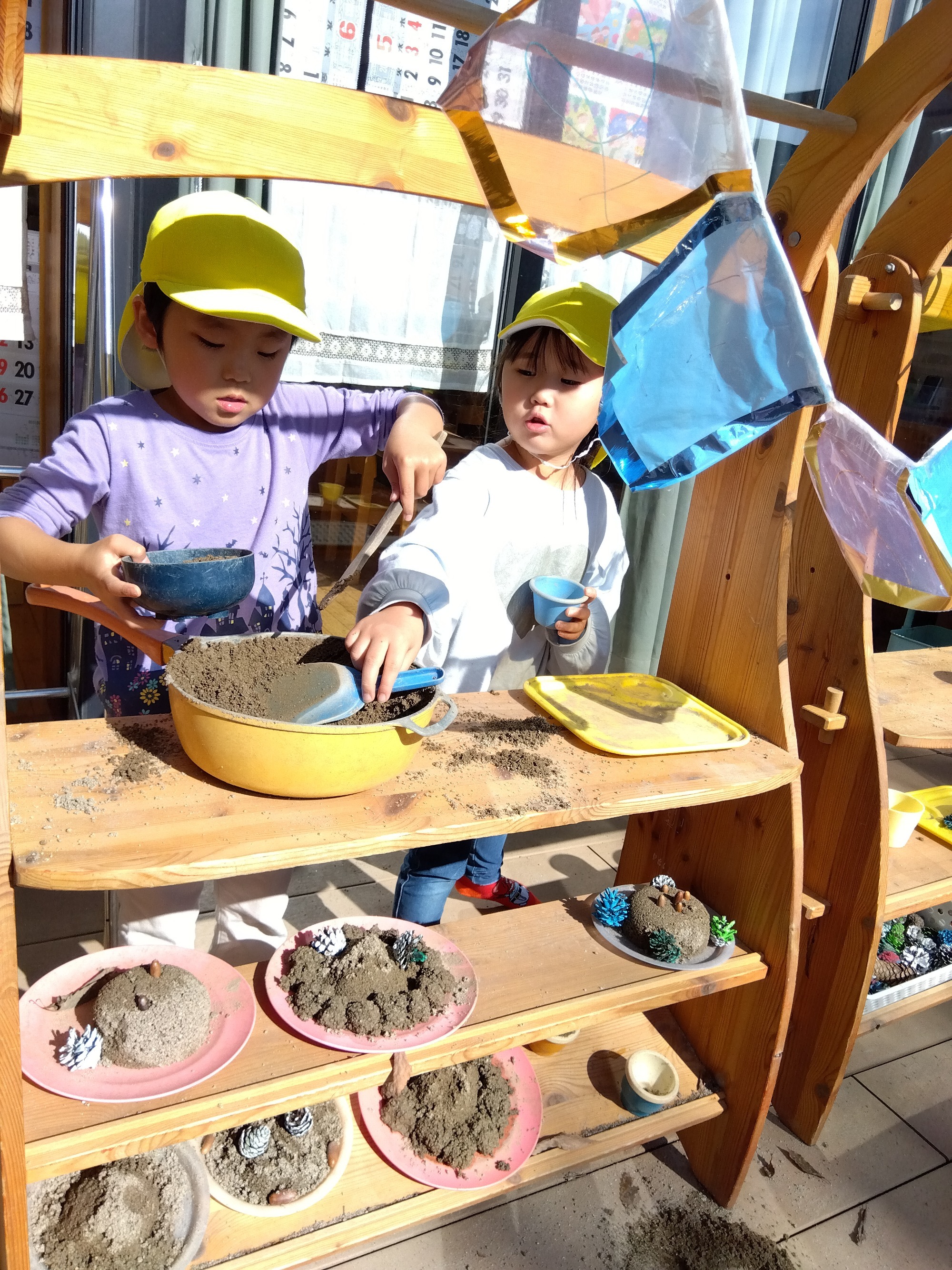 限られた環境の中ではありますが、秋の自然に親しみ季節を味わって遊んでいます。