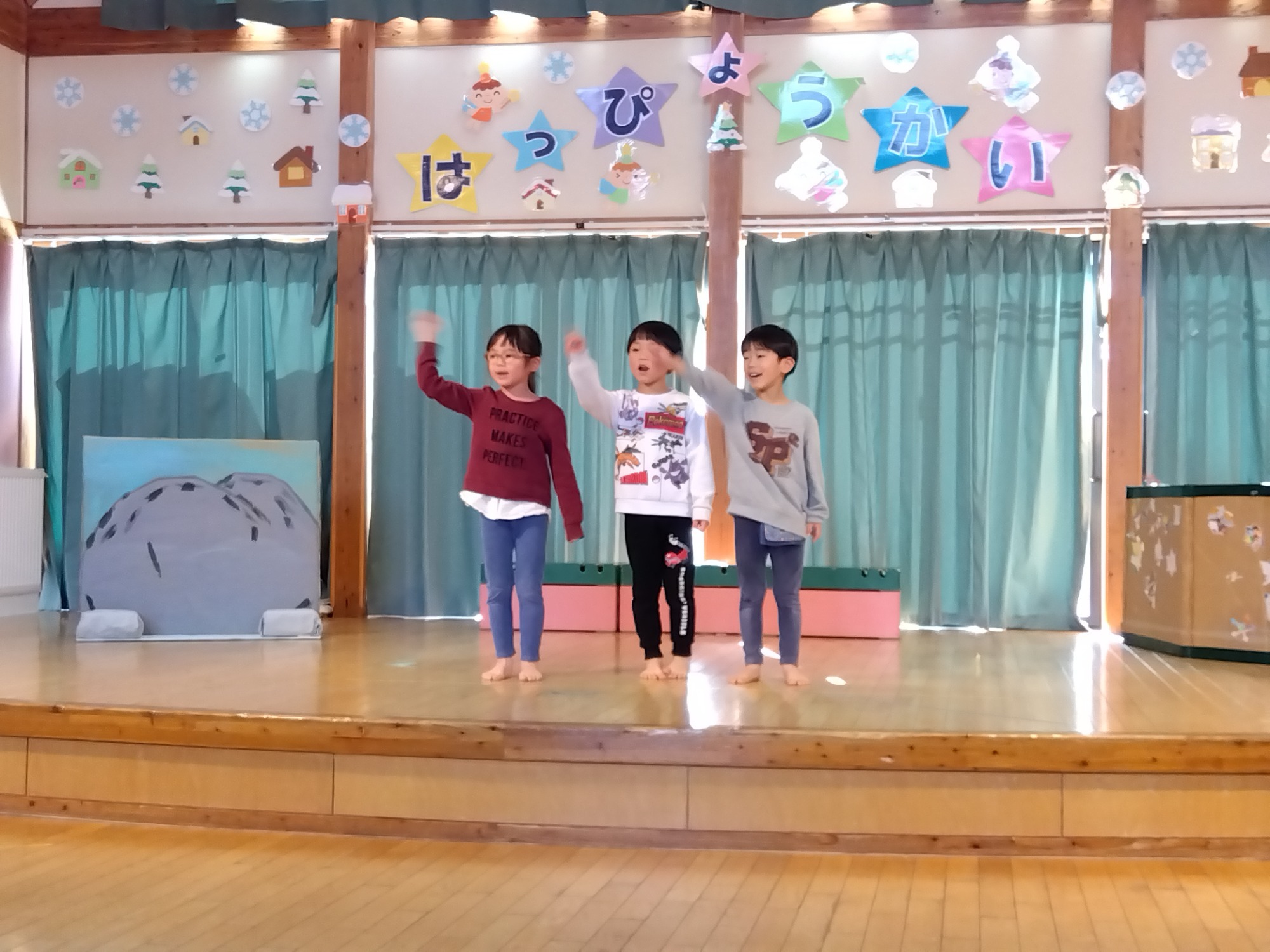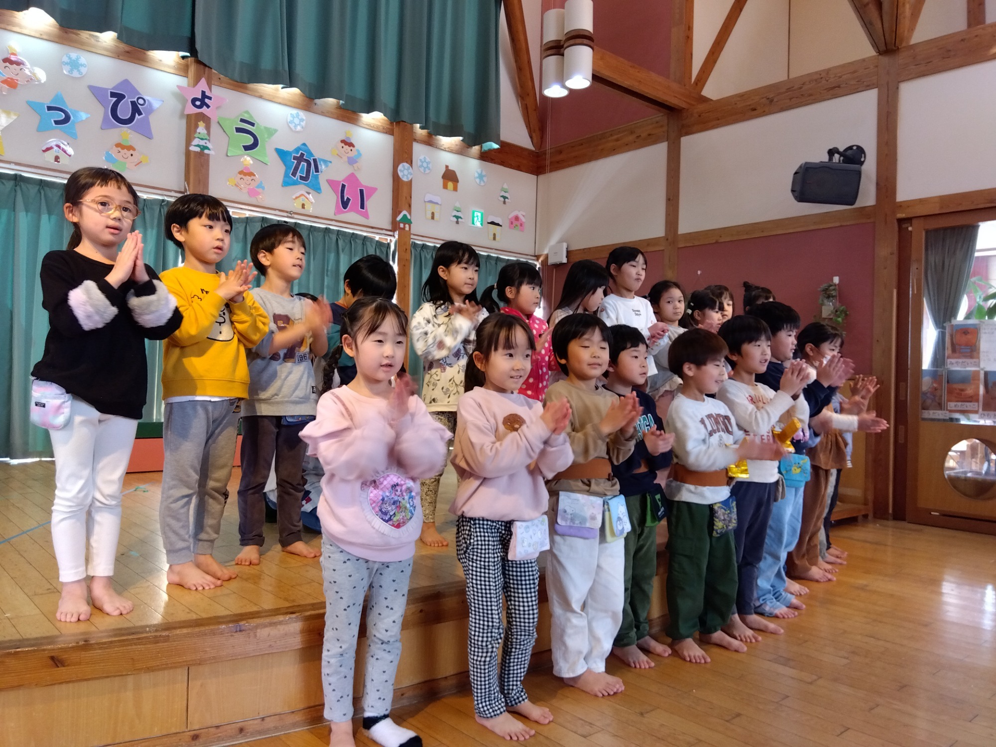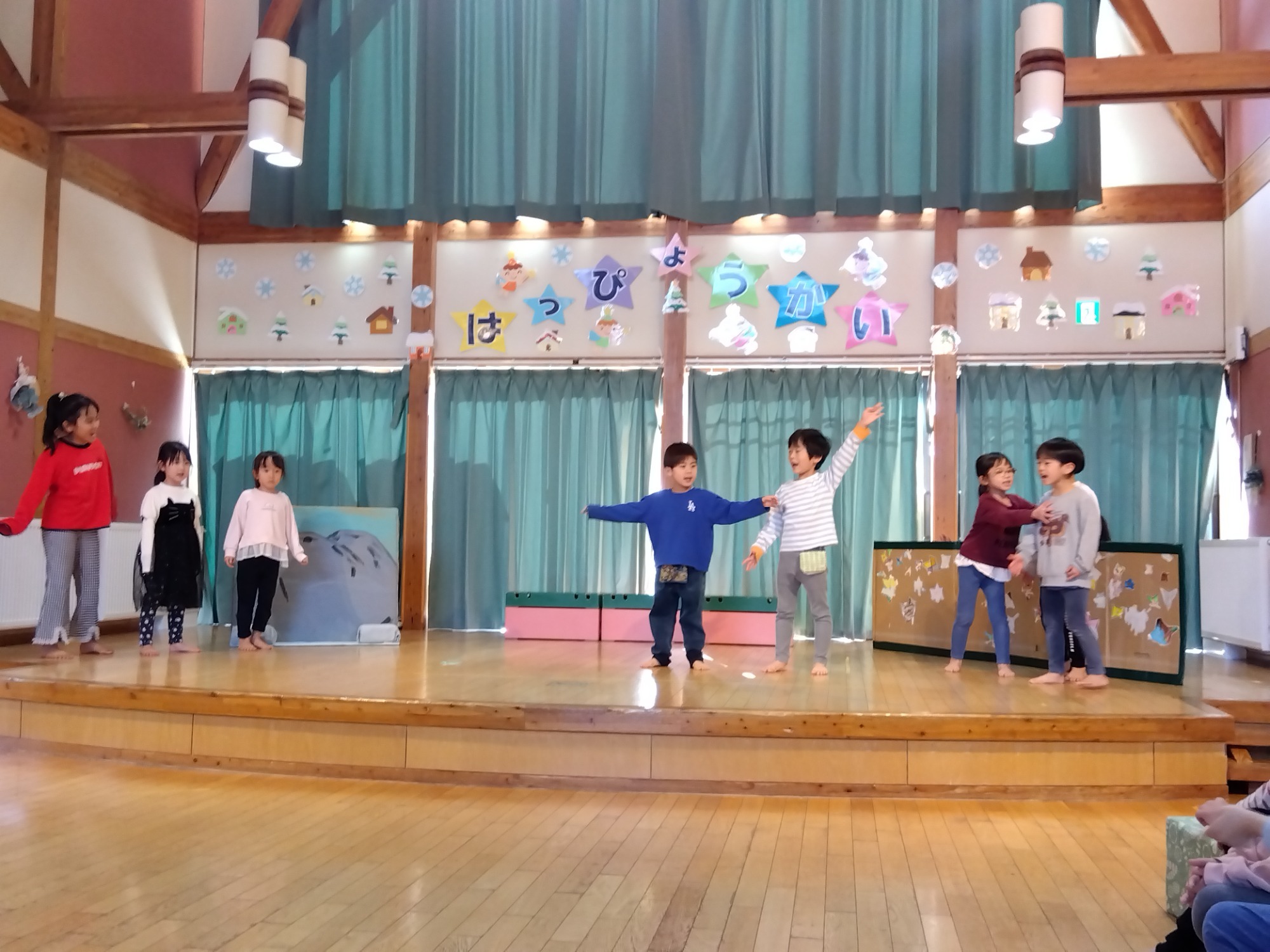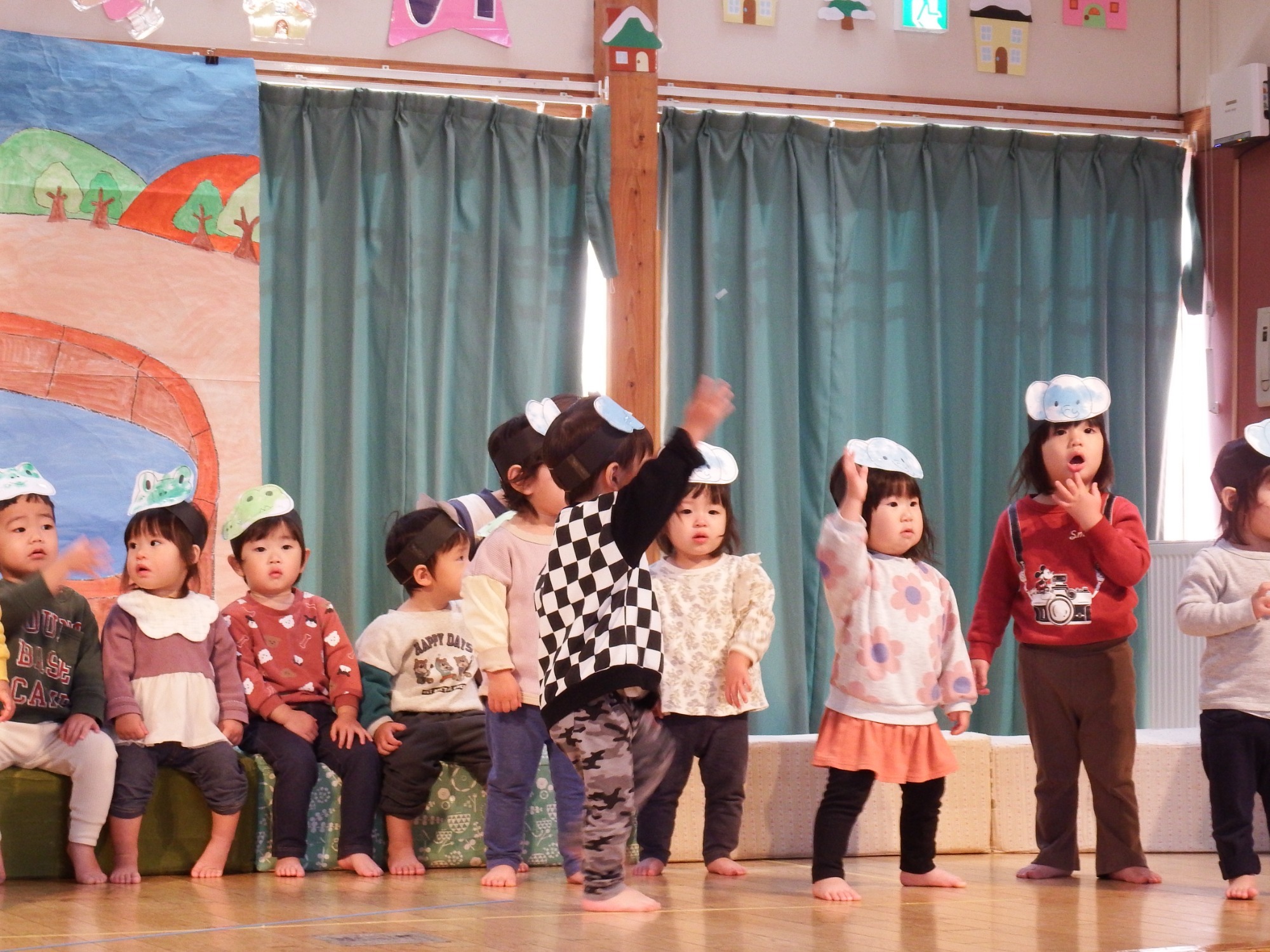 今年のほし、にじ組の生活発表会は、いつも過ごしている雰囲気の延長線でできるように、午前中それぞれのクラスのお家の方に来ていただいてステージ披露しました。