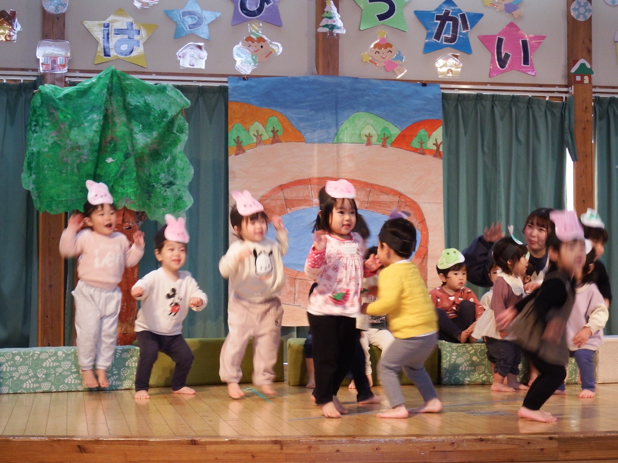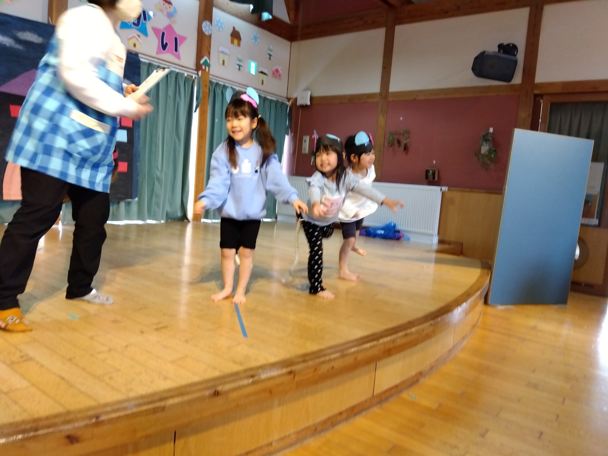 うさぎになって「ぴょんぴょんぴょん♪うさぎさん♪」元気に飛び跳ねました