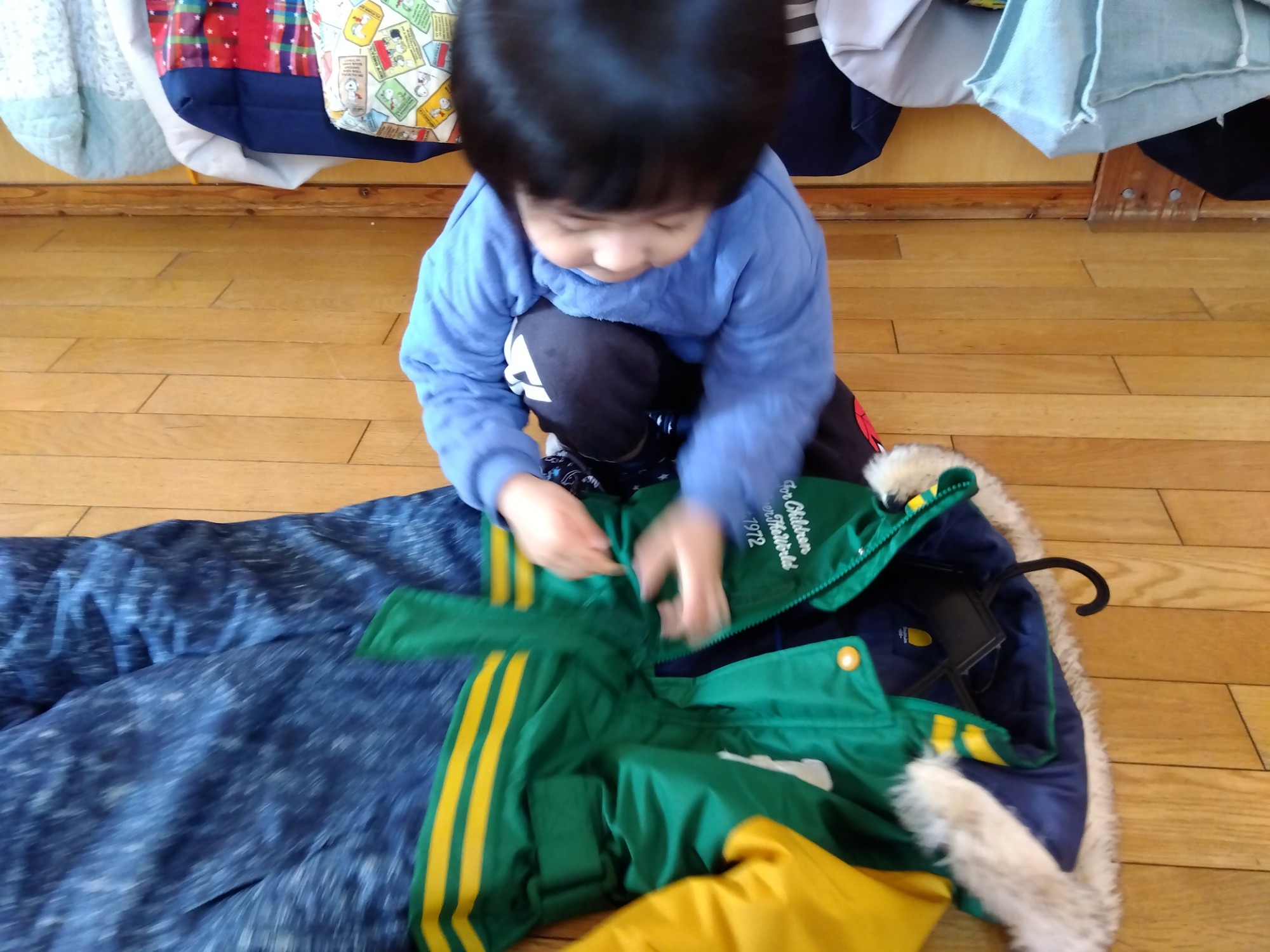 ファスナーも自分でできるようになってきました。手先が器用になってきましたね。